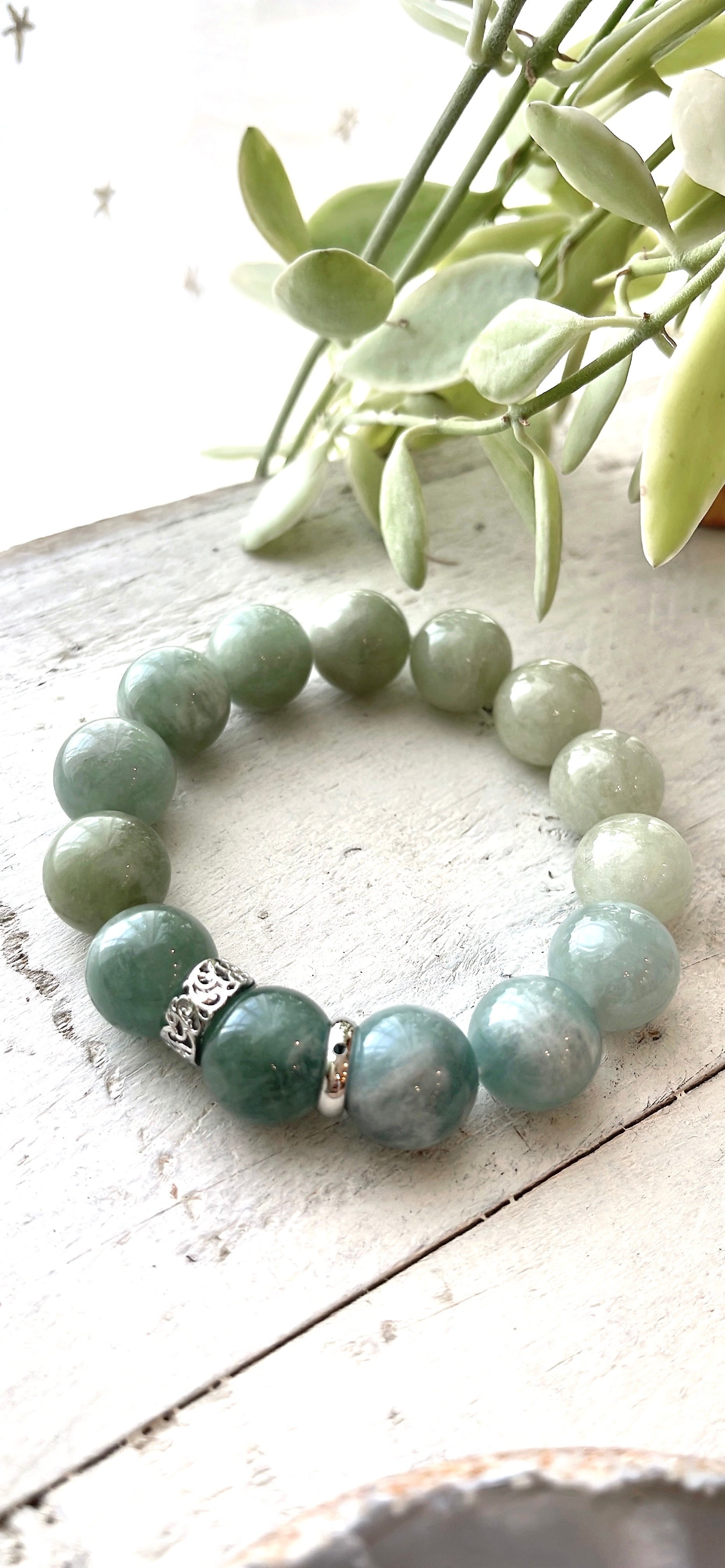 ⭐︎癒し力抜群⭐︎非加熱グリーンアクアマリンブレスレット