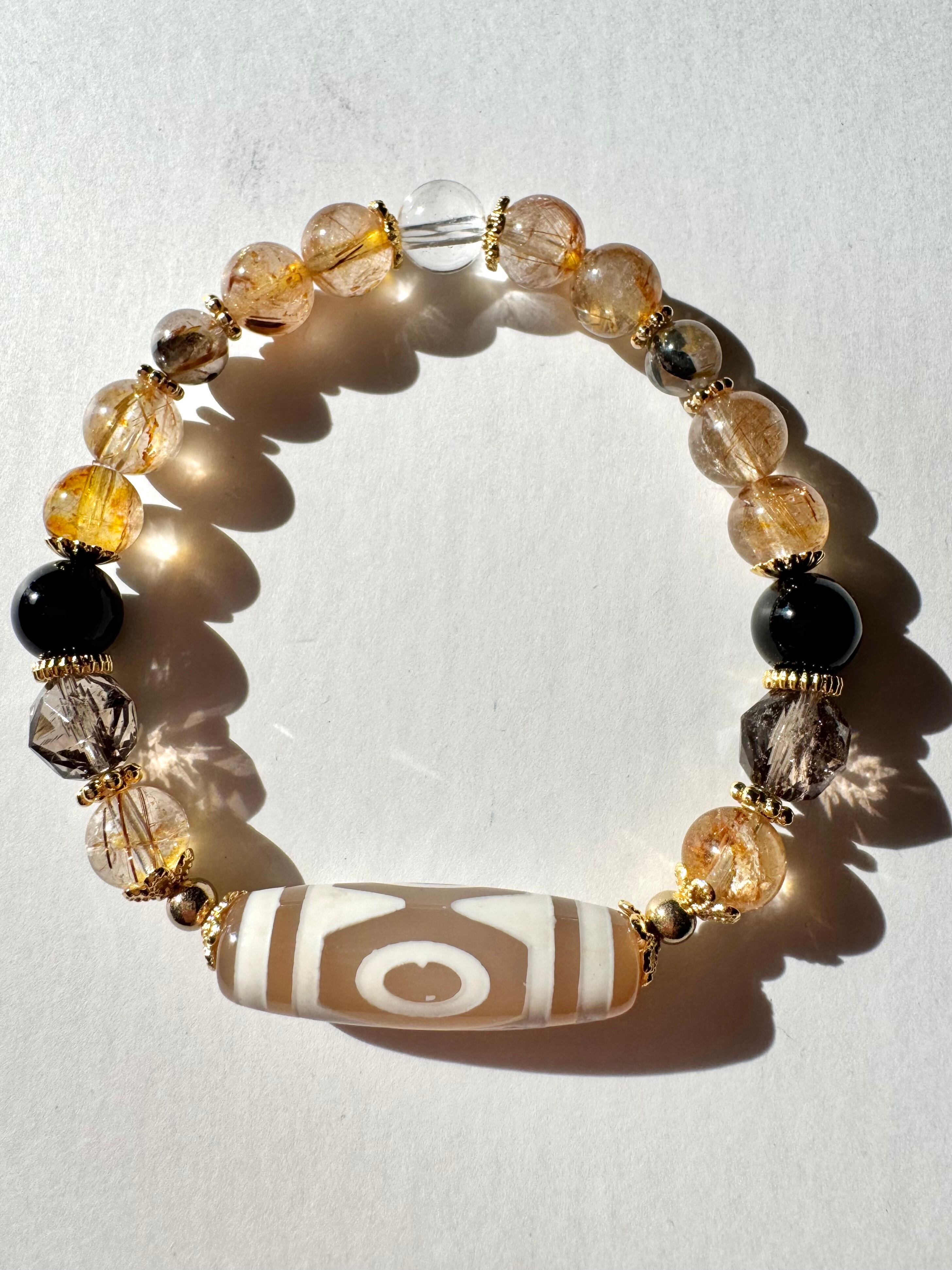 ☆安定と金運アップ・貯蓄運アップ!!四眼天珠とルチルクォーツブレス
